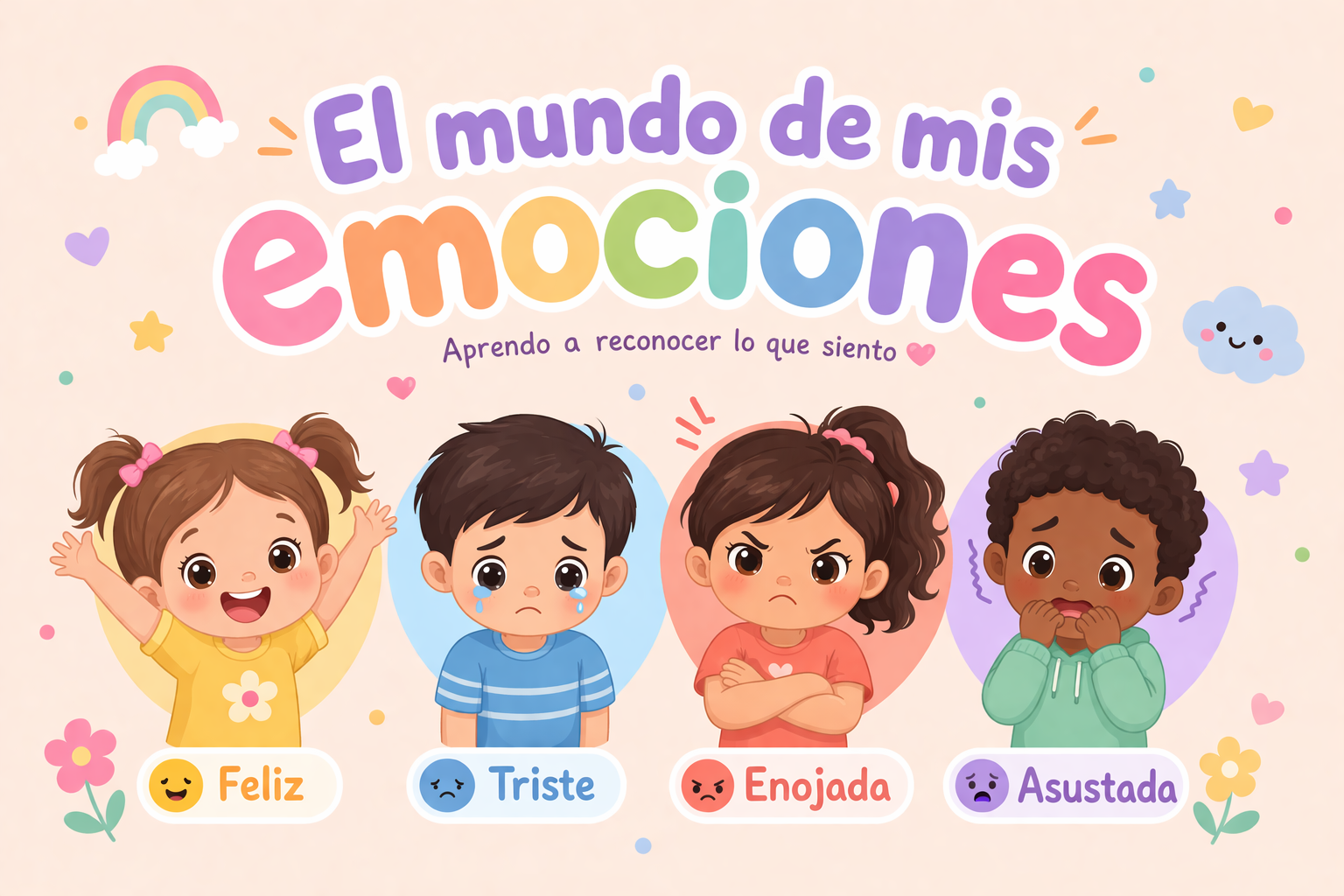 Este curso virtual está dirigido a niños de 4 a 6 años y tiene como propósito que reconozcan e identifiquen sus emociones básicas como la alegría, la tristeza, el enojo y el miedo. A través de imágenes, juegos interactivos y actividades sencillas, los niños podrán expresar lo que sienten en diferentes situaciones de su vida cotidiana.